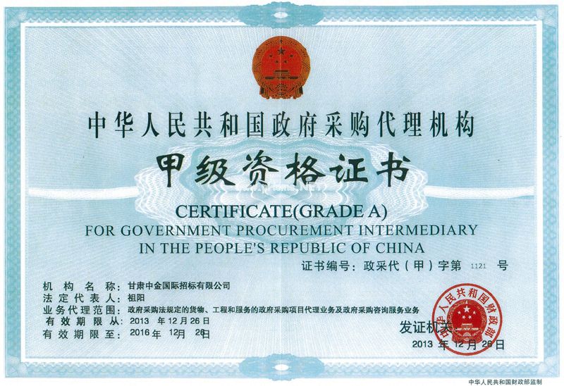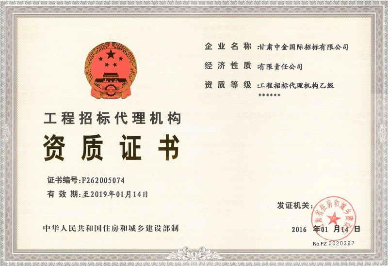 甘肅中金國際招標有限公司成立于2011年11月,注冊資金500萬元,于2012年5月取得由省財政廳頒發(fā)的政府采購代理機構乙級資質(政采代【乙】字第甘022號),并于2013年12月取得由中華人民共和國財政部頒發(fā)的政府采購代理機構甲級資質(政采代【甲】字第1121號),在2016年1月取得由甘肅省住房和城鄉建設廳頒發(fā)的工程招標代理機構乙級資質(F262005074);2015年4月取得機電產品國際招標代理資質,僅在短短幾年內成為本行業發(fā)展速度最快的公司之一。 甘肅中金國際招標有限公司由海外留學回國學生擔任核心領導,公司下設商務部、工程部、財務部及辦公室等業務部門,目前公司在職員工50余人,其中本科以上學歷占50%以上,擁有中高級國家技術職稱人員為19人。公司地處蘭州市繁華地段,交通非常便捷;辦公環(huán)境優(yōu)良,擁有寬敞明亮的開標大廳、評標會議室和會客室;計算機網絡管理辦公系統,實現了全方位的辦公自動化;同時,公司擁有一支具有豐富招標經驗的專業團隊,憑借過硬的專業知識、積極主動的服務意識、科學嚴謹的工作作風服務于省內各行政機關、企事業單位,在招標服務過程中,我們兢兢業業,踏實工作,嚴格遵守國家規(guī)定和程序進行相關招標服務,受到了眾多業主及投標人的一致好評。 中金公司將以高效率、高質量及好服務為各業主單位和投標人提供優(yōu)質和專業的招標服務。